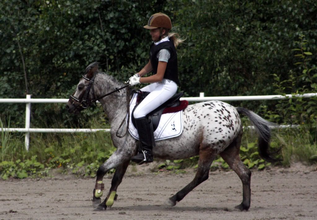 Ratsastaessa: vauhtikavio Dacapo viilettää kentän poikki pienenä tiikerinkirjavana salamana ja voittaa luokan ketterästi! Dacapo on mitä mahtavin lasten esteponi, sillä riittää ponnua ja virtaa vaikka millaisiin hyppyihin. Eikä Dacapo takuulla koskaan kiellä! Estekisoissa Dacapo on ylittänyt puhtaasti 70 cm radan mutta kotona se hyppää kevyesti myös 80 cm.